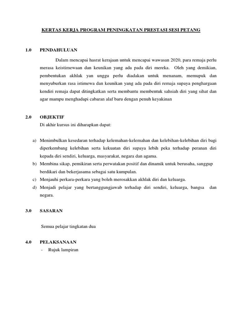 . 83 contoh kertas kerja program sekolah info guru berikut merupakan bahan bahan yang dikongsikan oleh cikgu ainul f di laman web 4shared. Bil Tarikh Tempat Bil. Kertas Kerja Kem Kembara Anak Soleh Kelas Aliran Agama 2016 10 February 2016 Kertas Kerja Kem Kembara Anak Soleh Kelas Aliran Agama 2016.